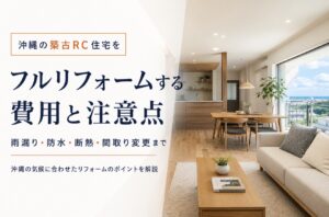 この記事では、沖縄の築古RC住宅をフルリフォームする場合の費用目安と、雨漏り・防水・断熱・間取り変更で失敗しないための注意点をわかりやすく解説します。