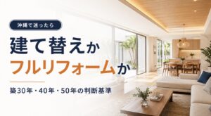 この記事では、沖縄で建て替えかフルリフォームか迷っている方に向けて、築30年・築40年・築50年の判断基準をわかりやすく解説します。