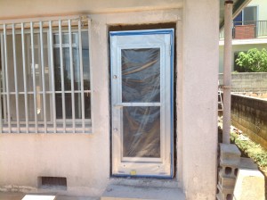 勝手口を設置!彩風勝手口なので戸を開けなくてもガラス面を上下にスライドさせて彩風できます。これで室内の通気性も良くなります。